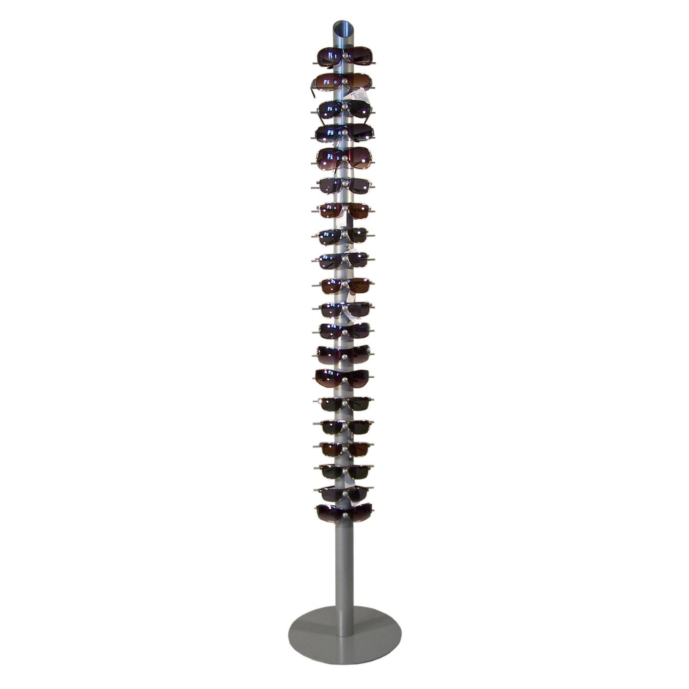 Eleganter Ständer aus robustem, silber pulverbeschichtetem Metall. Mit den Massen 160 × 40 × 40 cm (H × B × T) bietet er Platz für 20 Brillen und ermöglicht eine geordnete, professionelle Präsentation.
