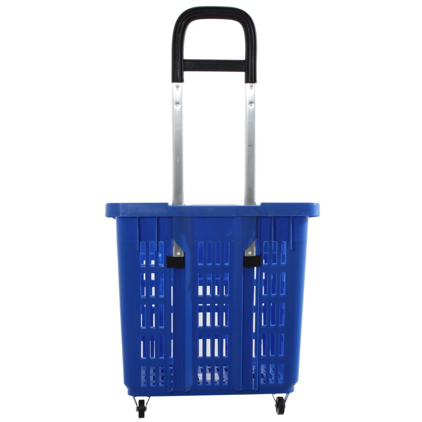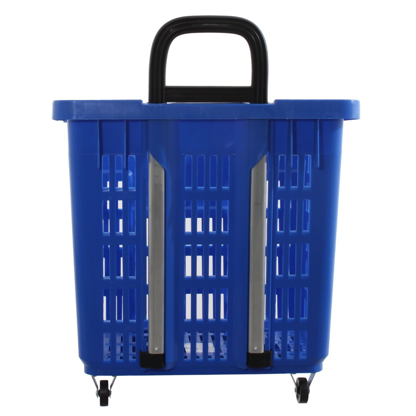 Bieten Sie Ihren Kunden ein bequemes Einkaufserlebnis: Dieser Einkaufstrolley in Blau überzeugt durch seine extra stabile Kunststoffausführung und ein grosszügiges Fassungsvermögen von 55 Litern. Der robuste, ausziehbare Bügel macht das Ziehen besonders komfortabel, während die Stapelbarkeit für platzsparende Lagerung sorgt.