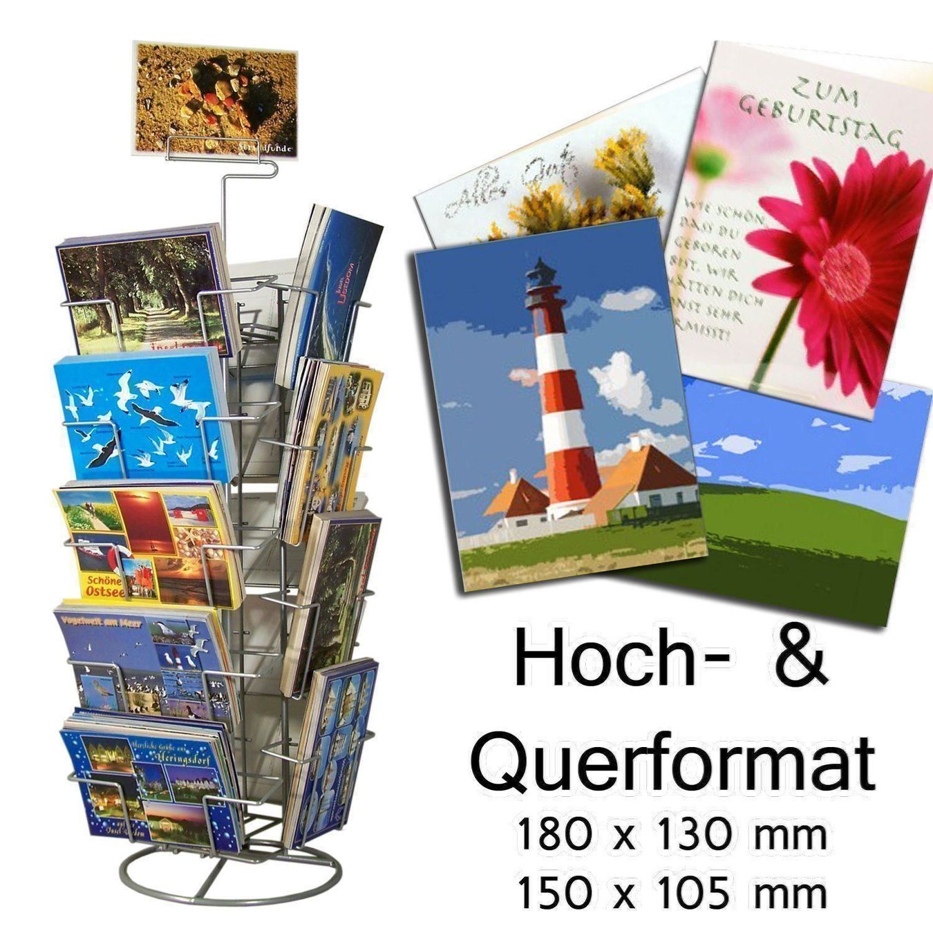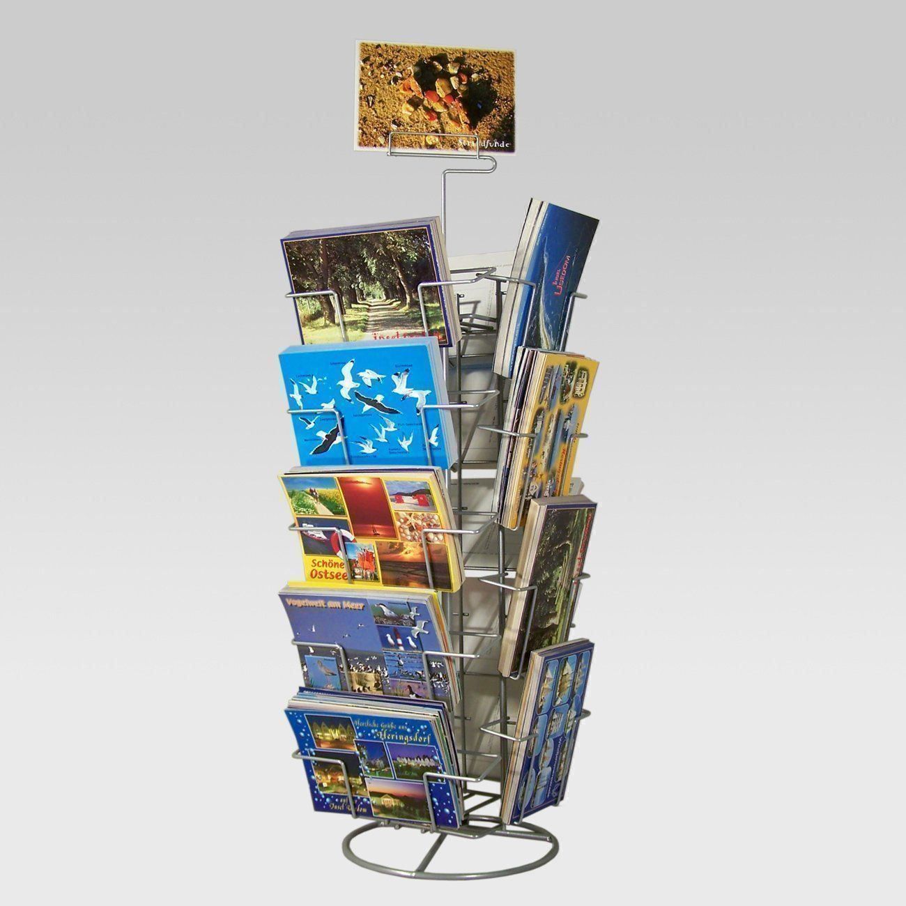 Kartenständer für Postkarten & Grusskarten – 18 Fächer für Quer- und Hochformat, drehbar mit Topschildhalter