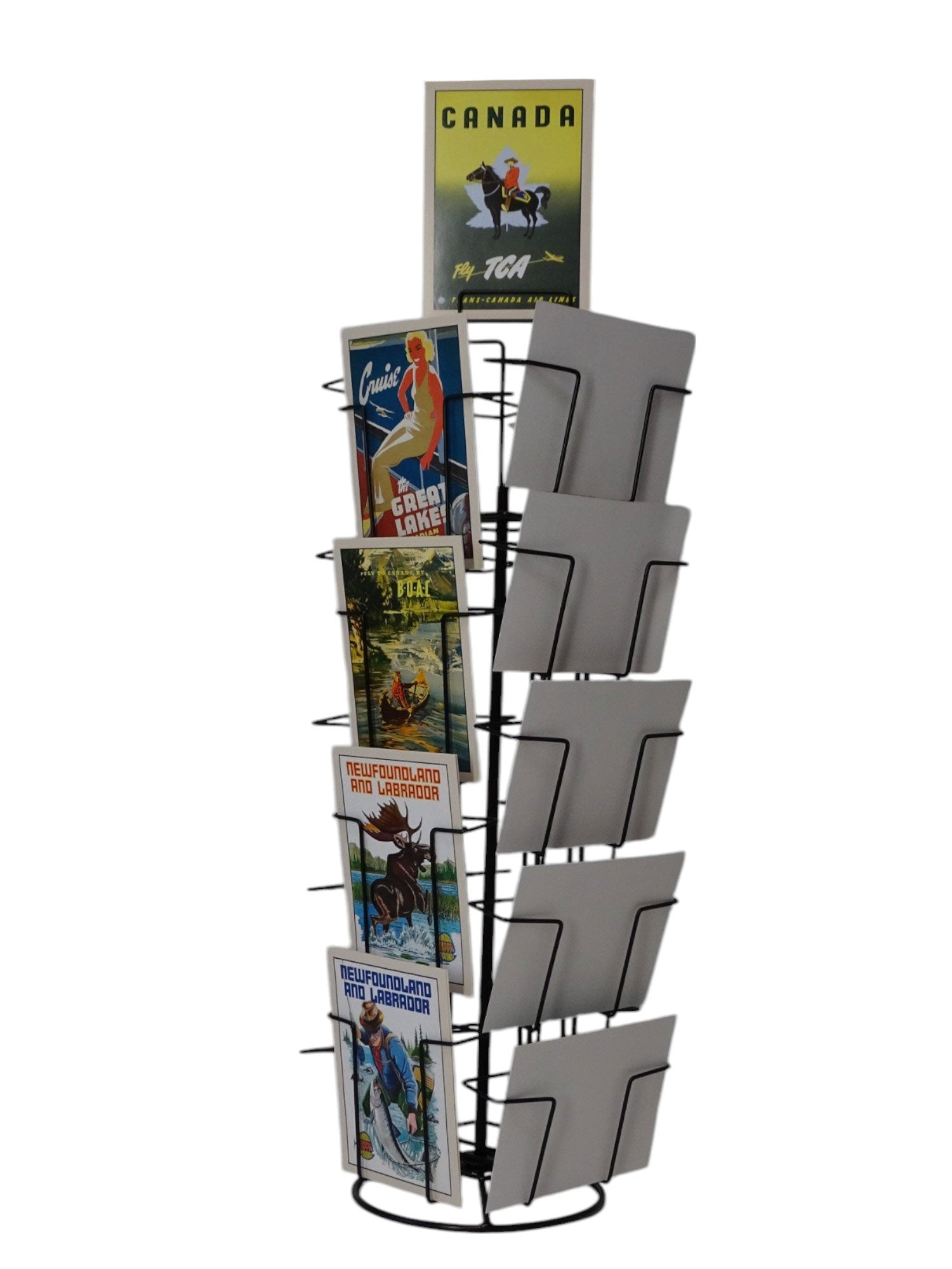 Dieser drehbare Kartenständer mit 18 Fächern eignet sich ideal zur Präsentation von Postkarten, Werbekarten oder Flyern im Format 130 x 180 mm – sowohl im Quer- als auch im Hochformat. Perfekt für Verkaufsstellen, Messen oder Empfangsbereiche, wo eine platzsparende und dennoch wirkungsvolle Präsentationslösung gefragt ist.
