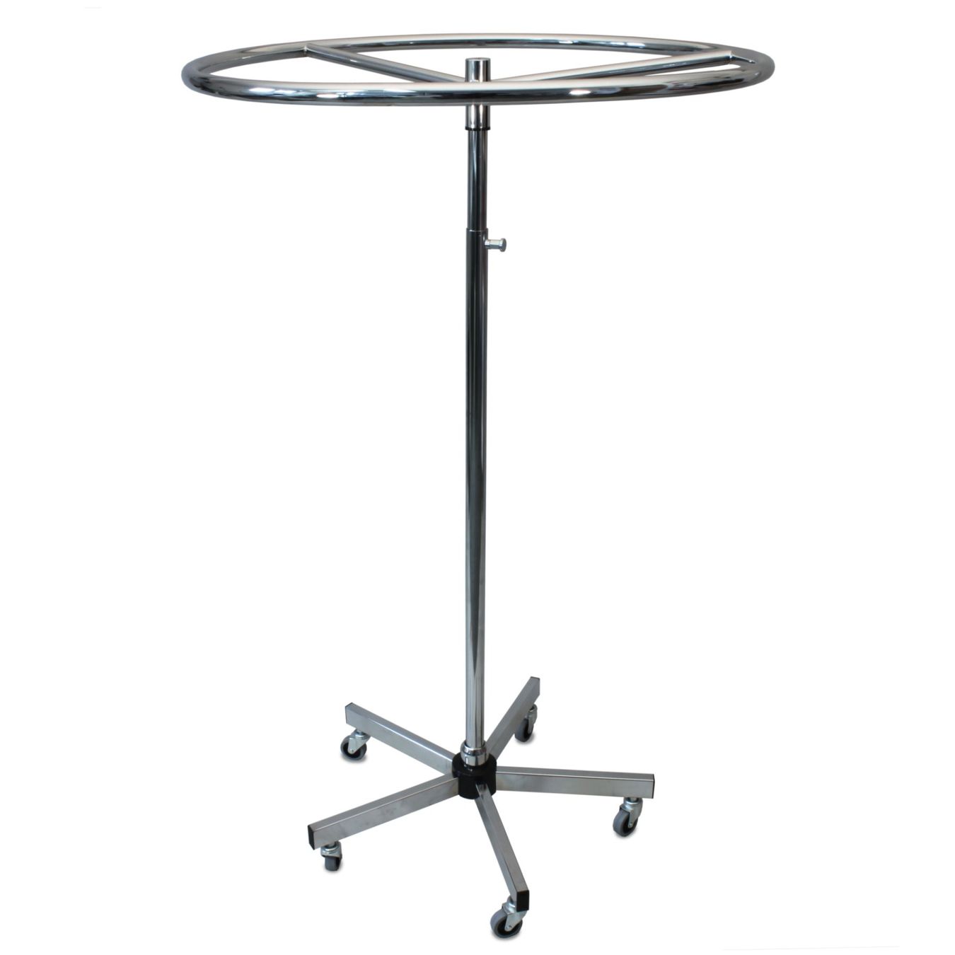 Dieser hochwertige Ringständer ist die perfekte Lösung für eine stilvolle und funktionale Präsentation von Hängeware – ob in Boutiquen, auf Messen oder im Lagerbereich. Der stabile 5-Stern-Fuss mit Rollen sorgt für einen sicheren Stand und volle Mobilität, während der grosse Ring mit einem Durchmesser von 800 mm viel Platz für Ihre Ware bietet.