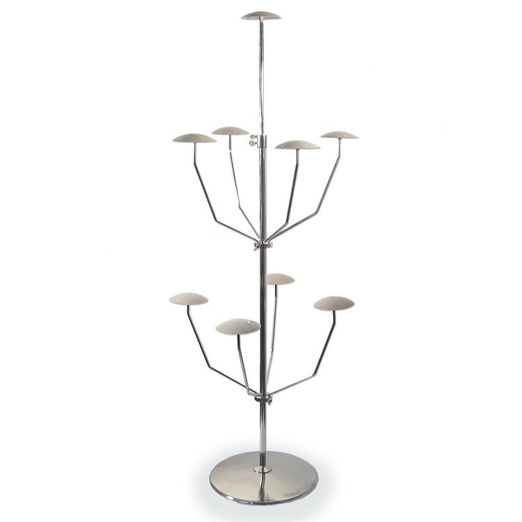 Setzen Sie Ihre Hüte stilvoll in Szene: Unser Designer-Hutständer aus verchromtem Metall überzeugt durch modernes Design, hohe Funktionalität und vielseitige Einsatzmöglichkeiten.